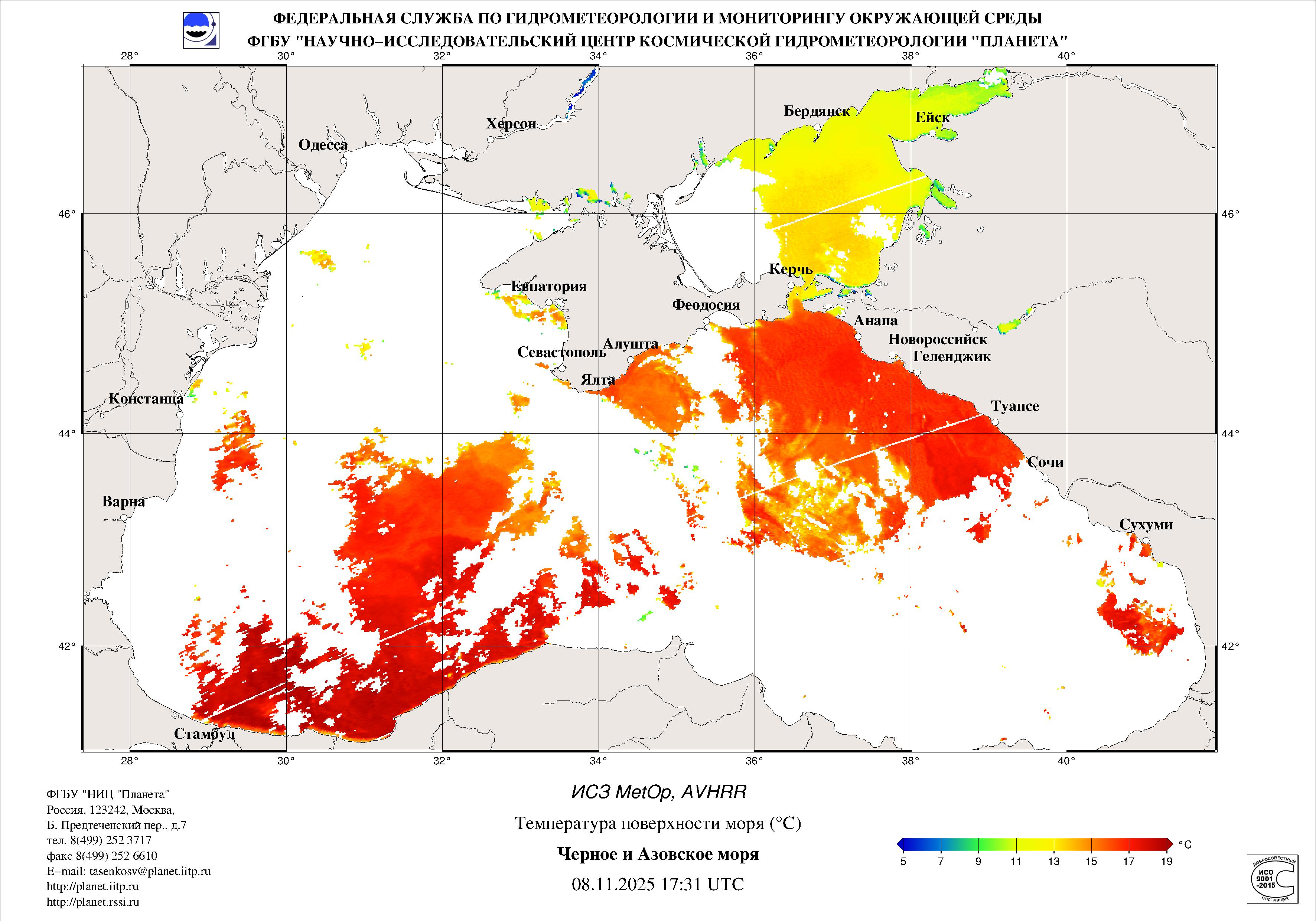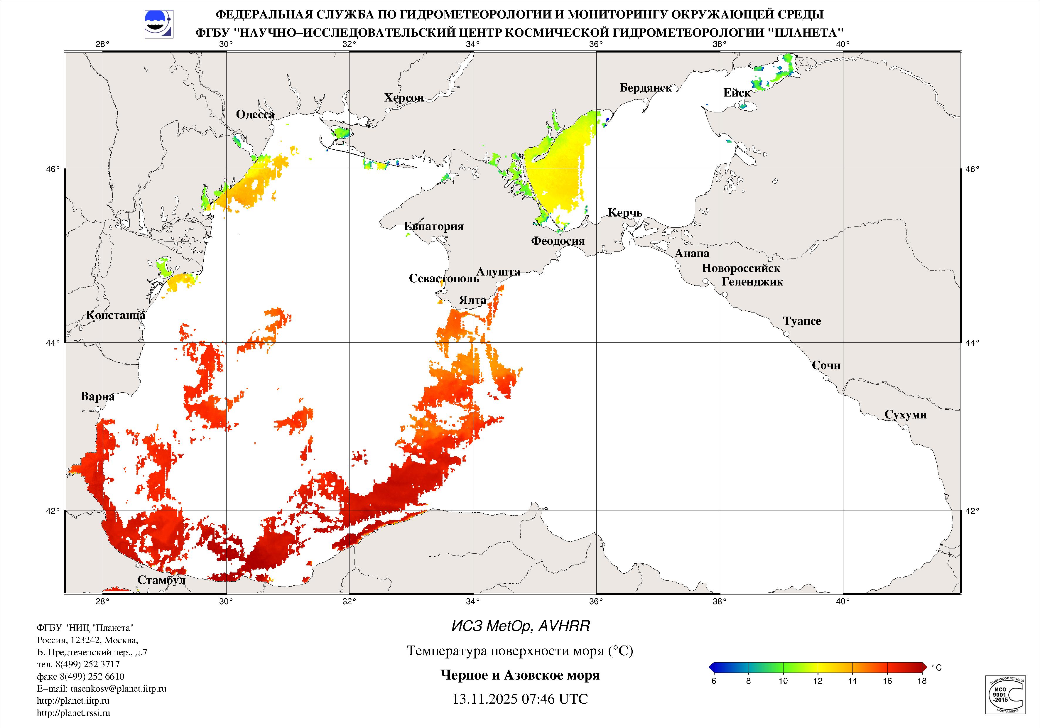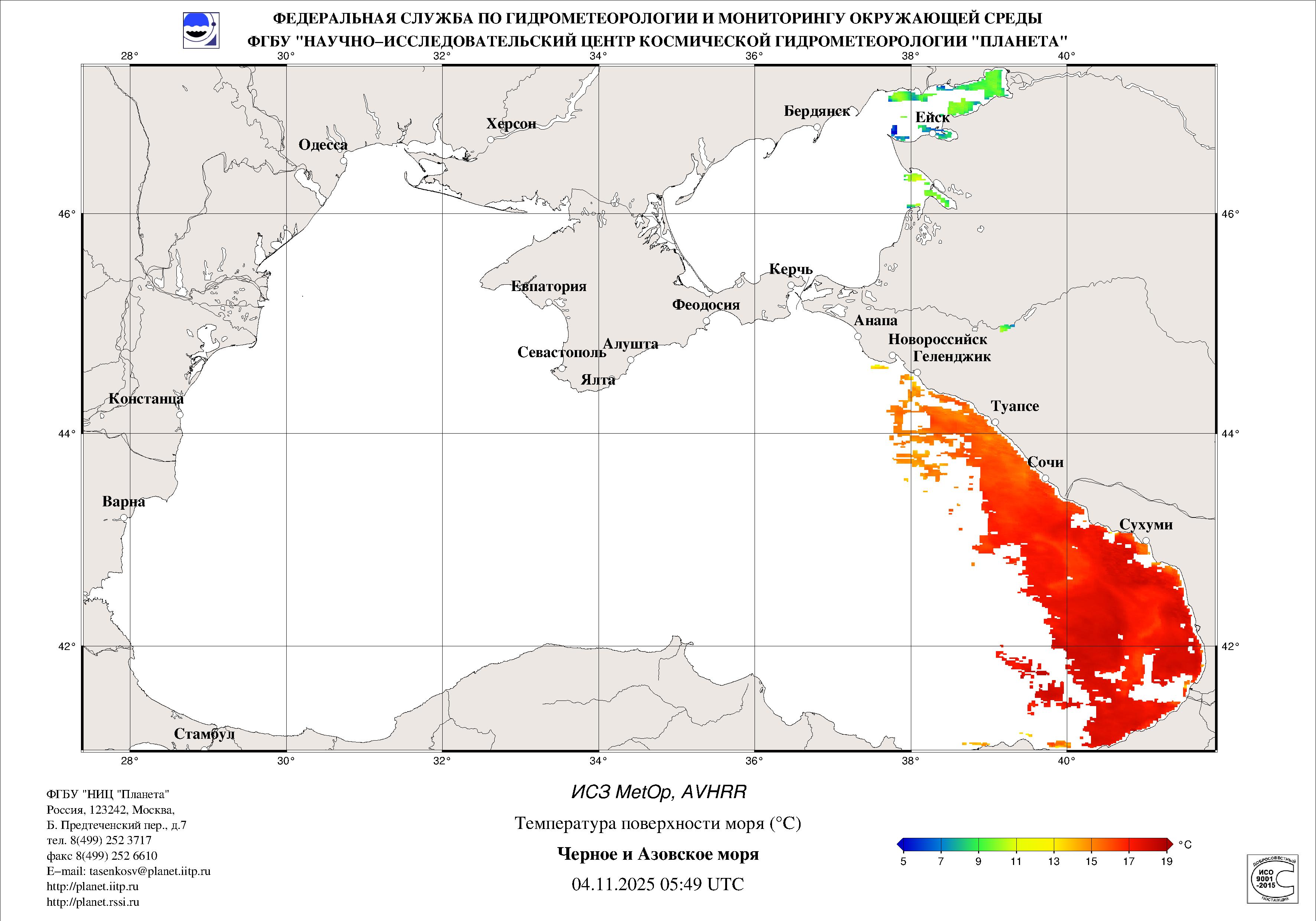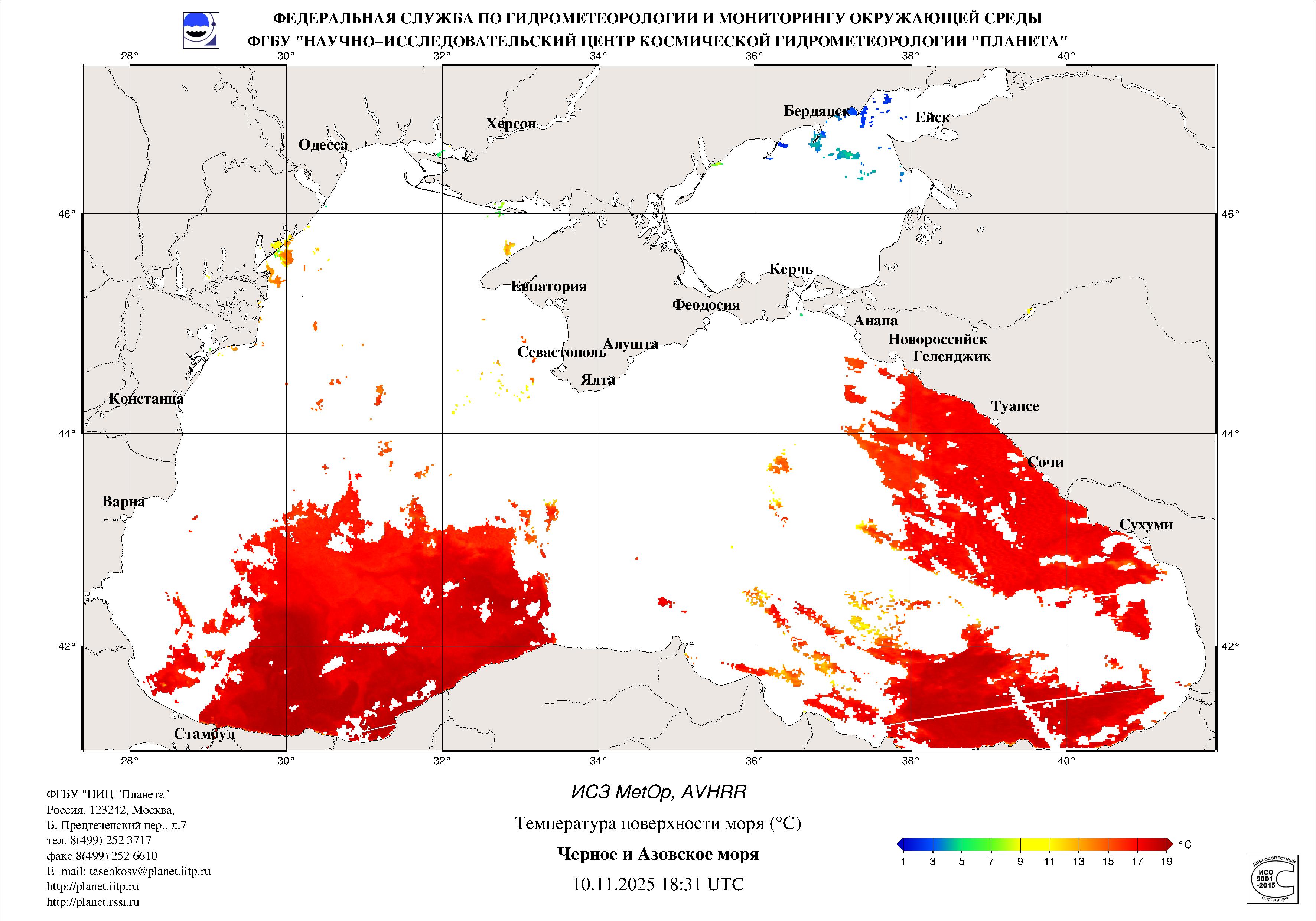 Satellite monitoring of the Russian sector of Black and Azov Seas