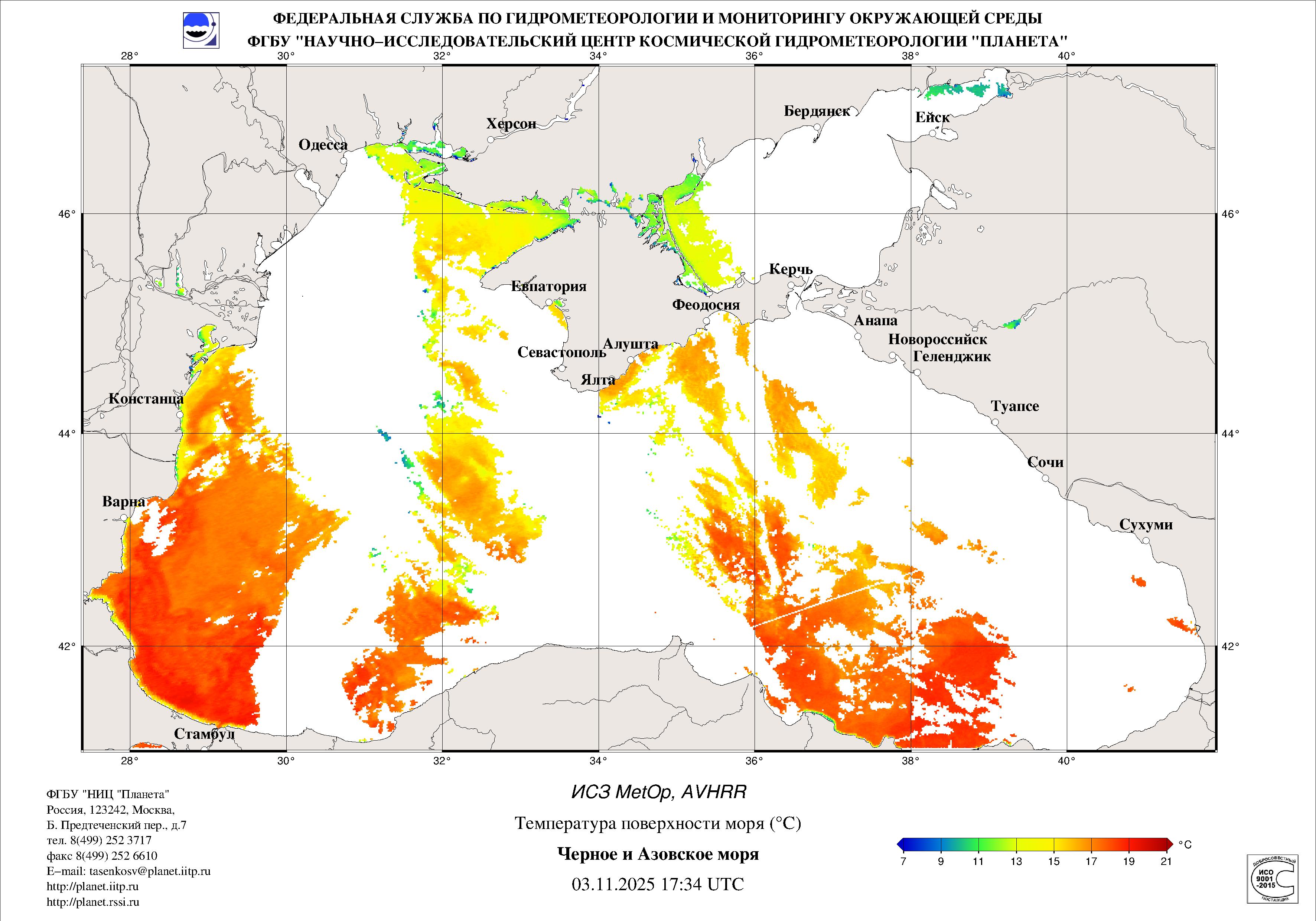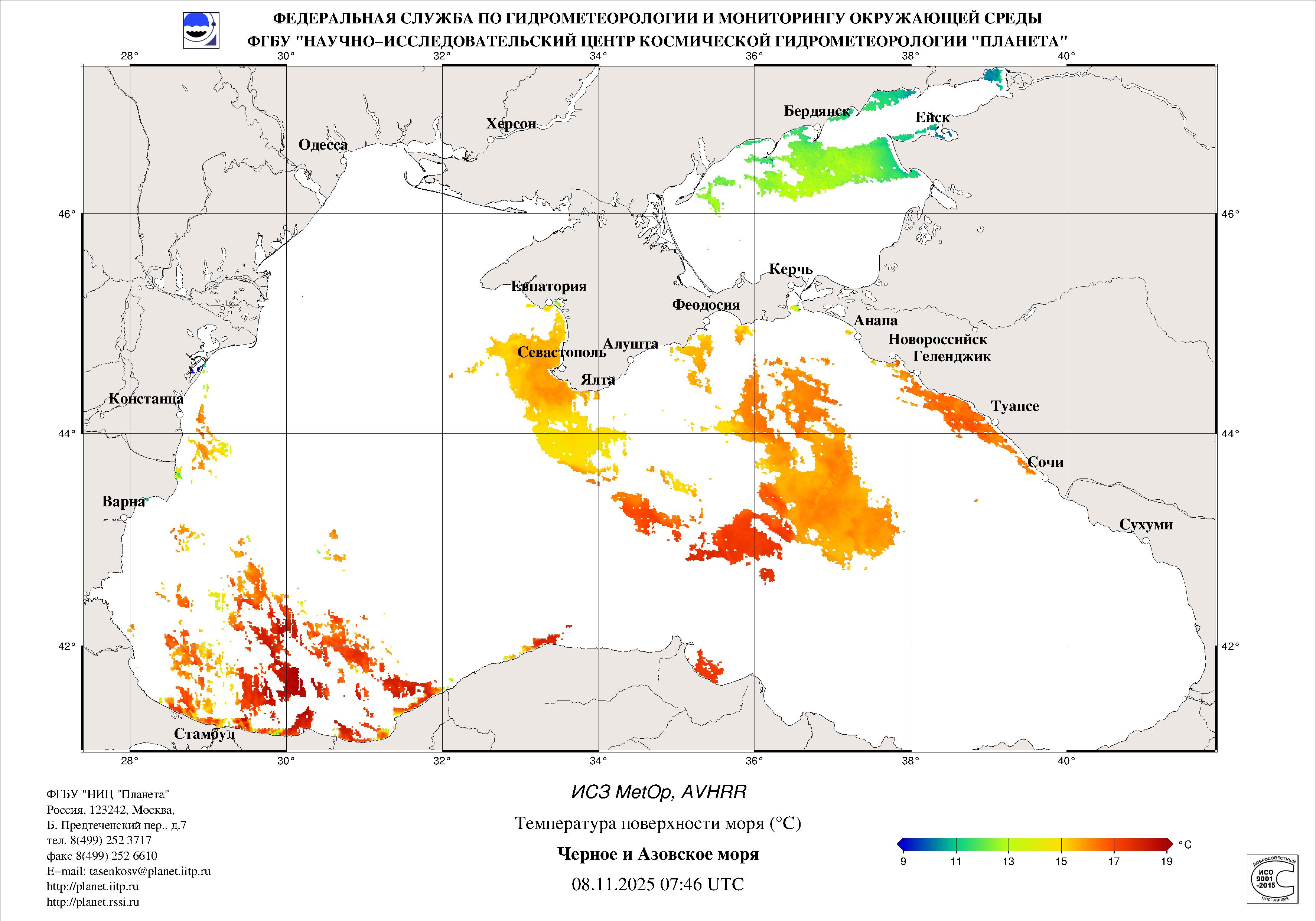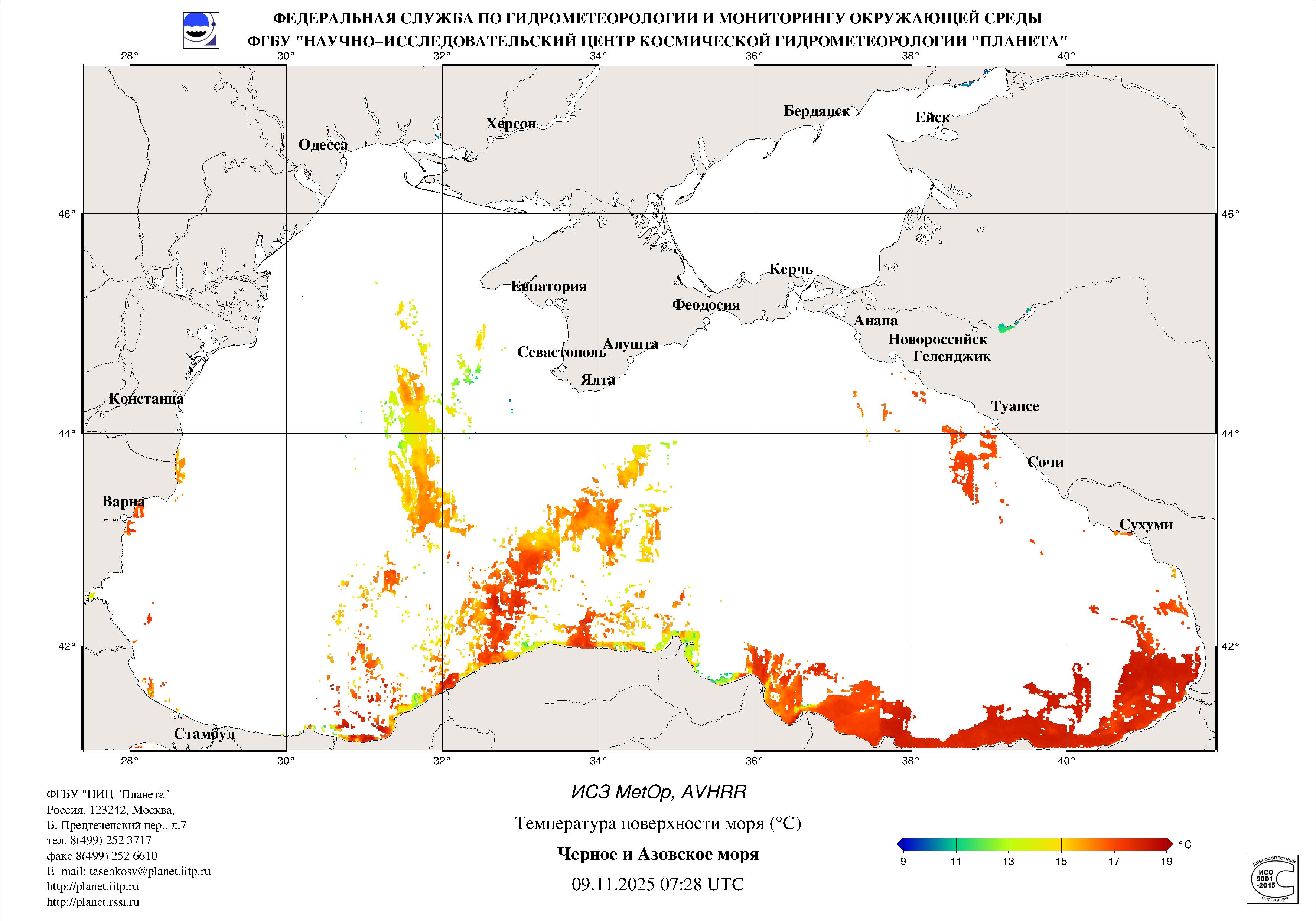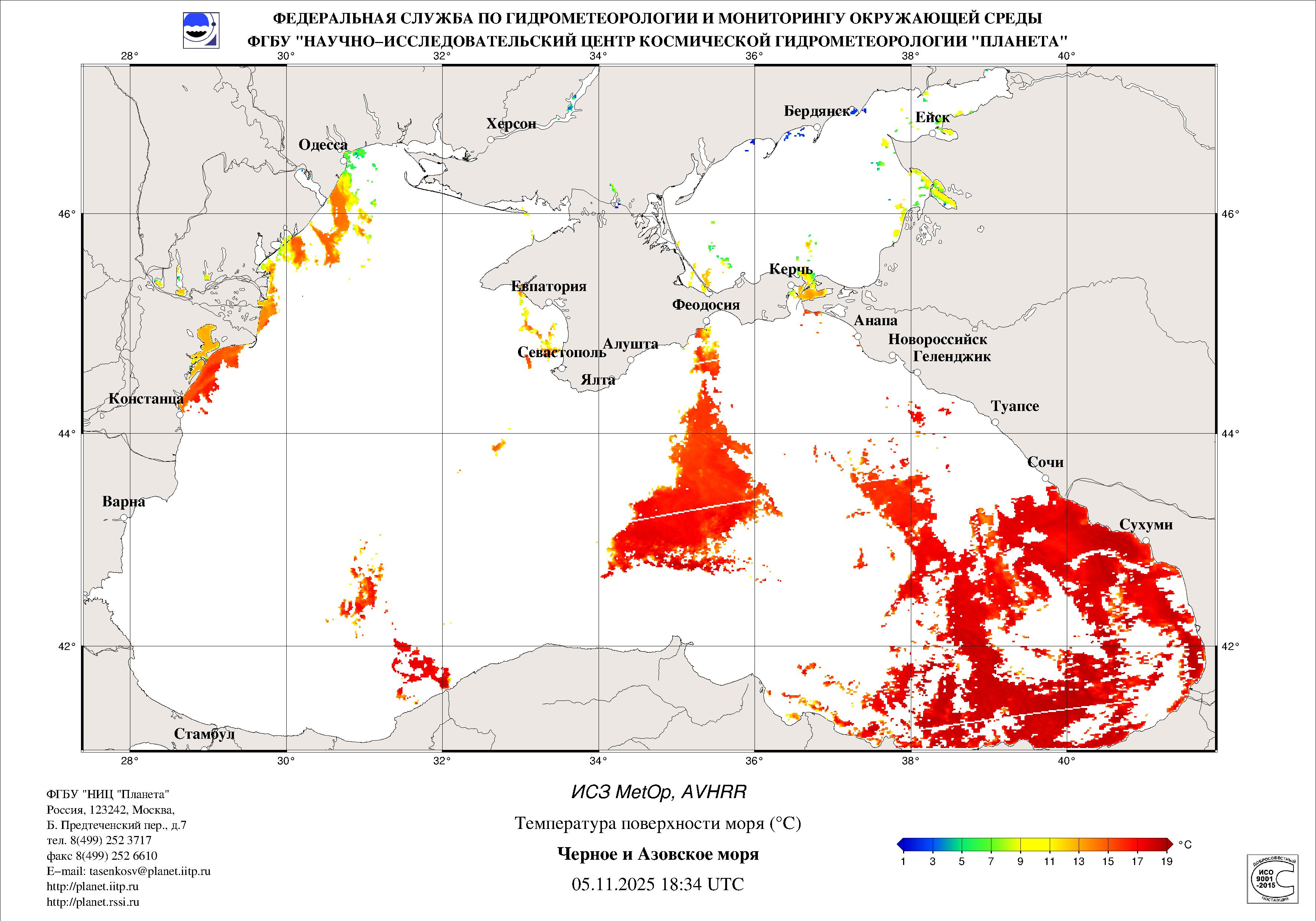 Satellite monitoring of the Russian sector of Black and Azov Seas