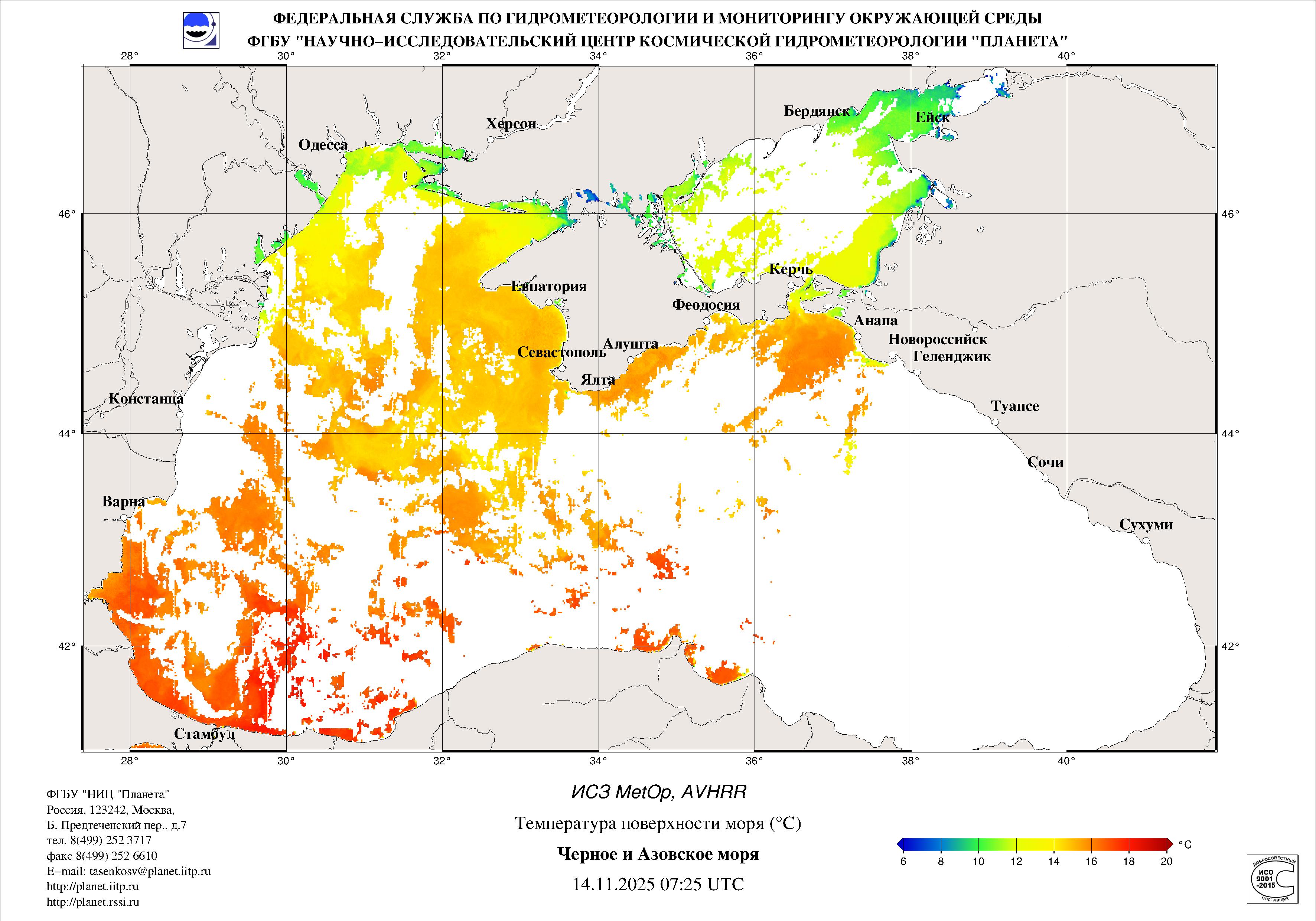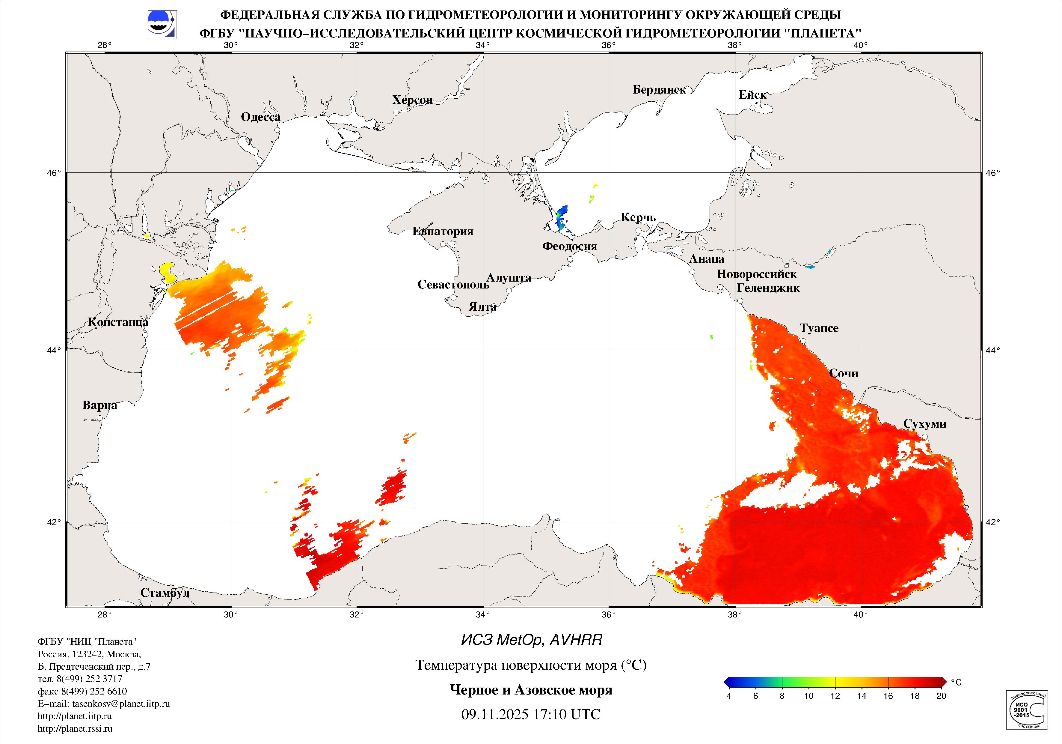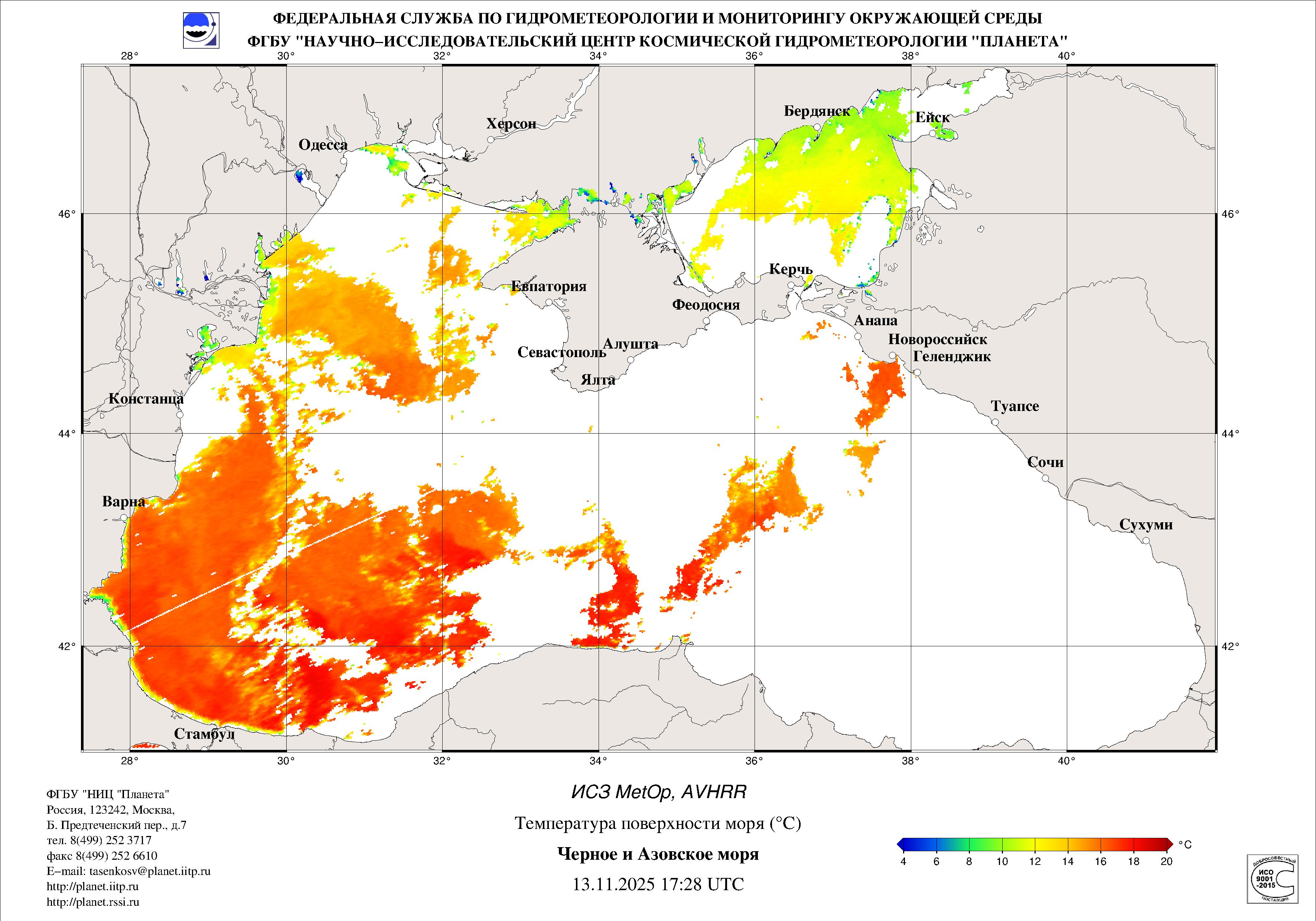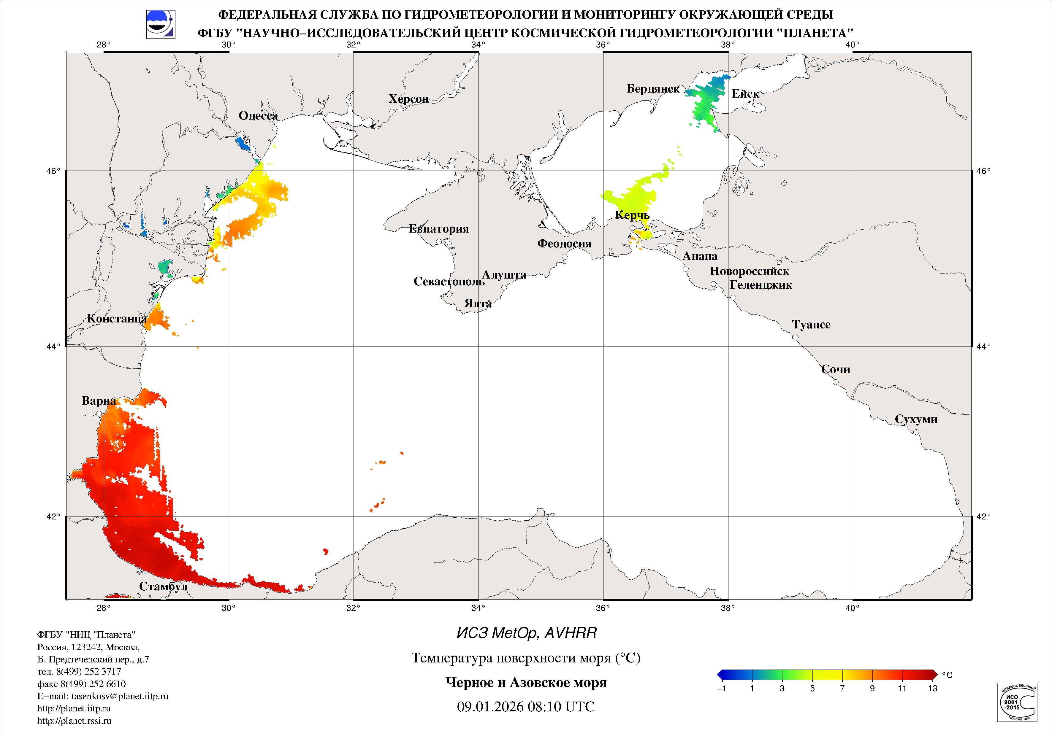 Satellite monitoring of the Russian sector of Black and Azov Seas
