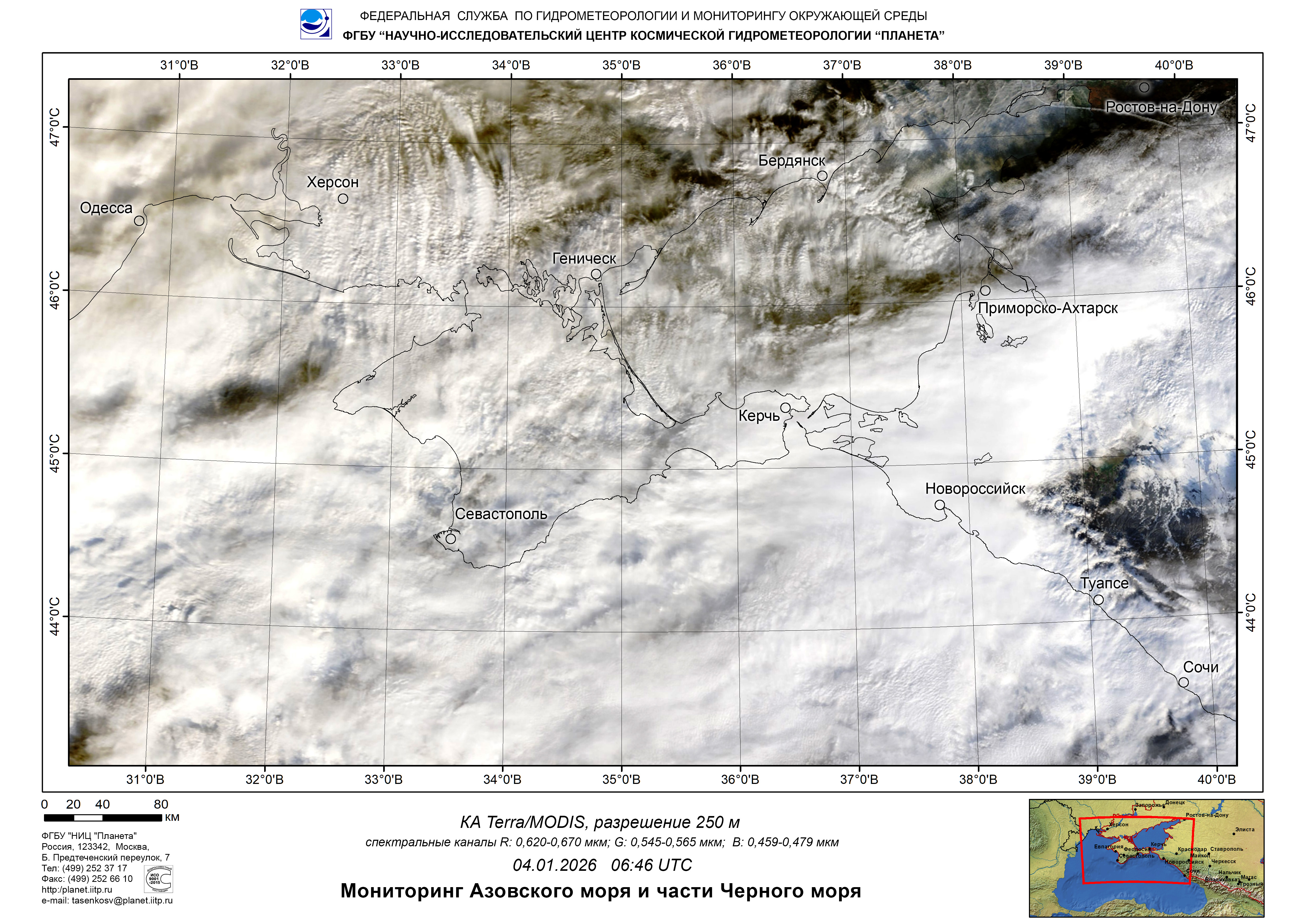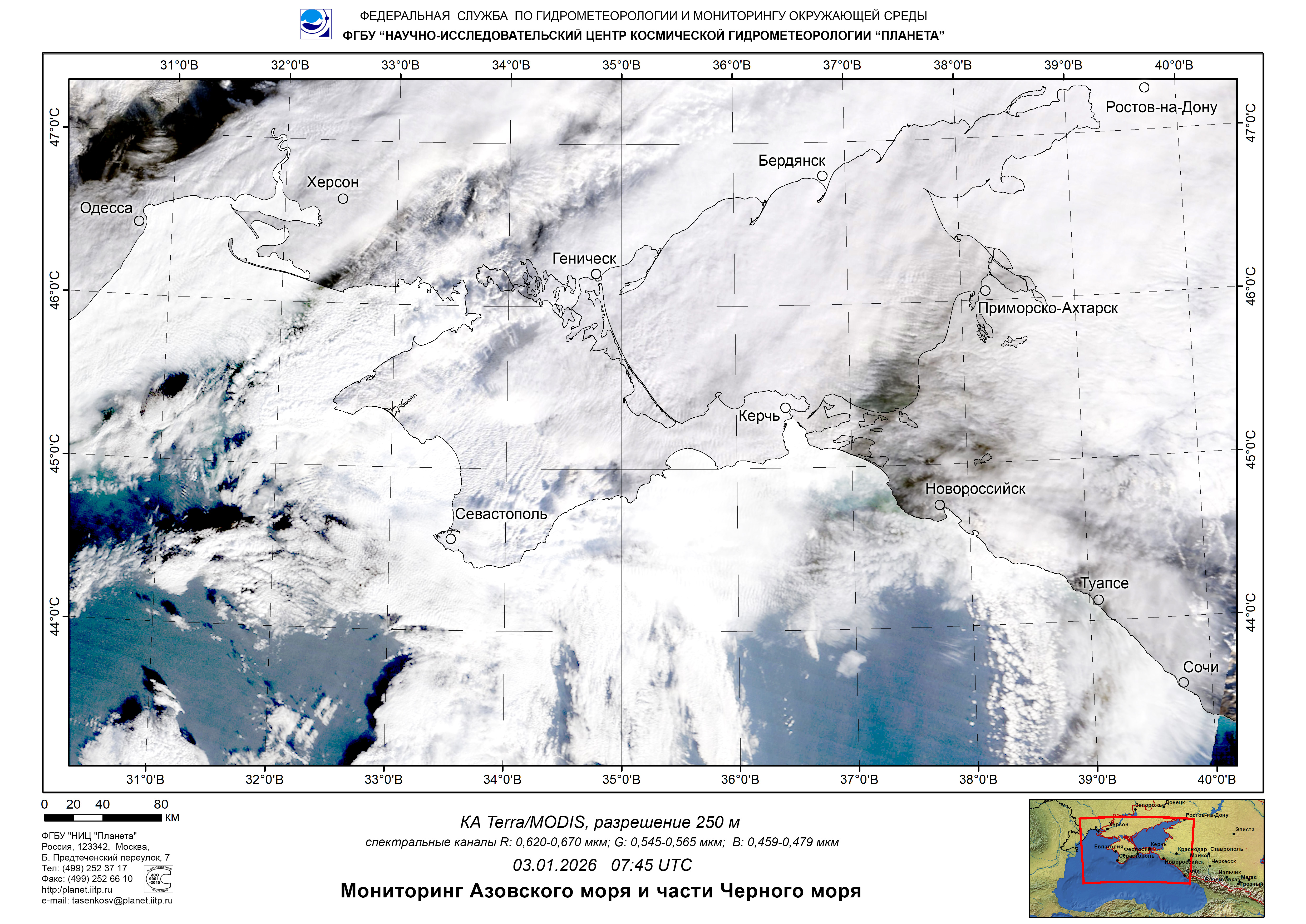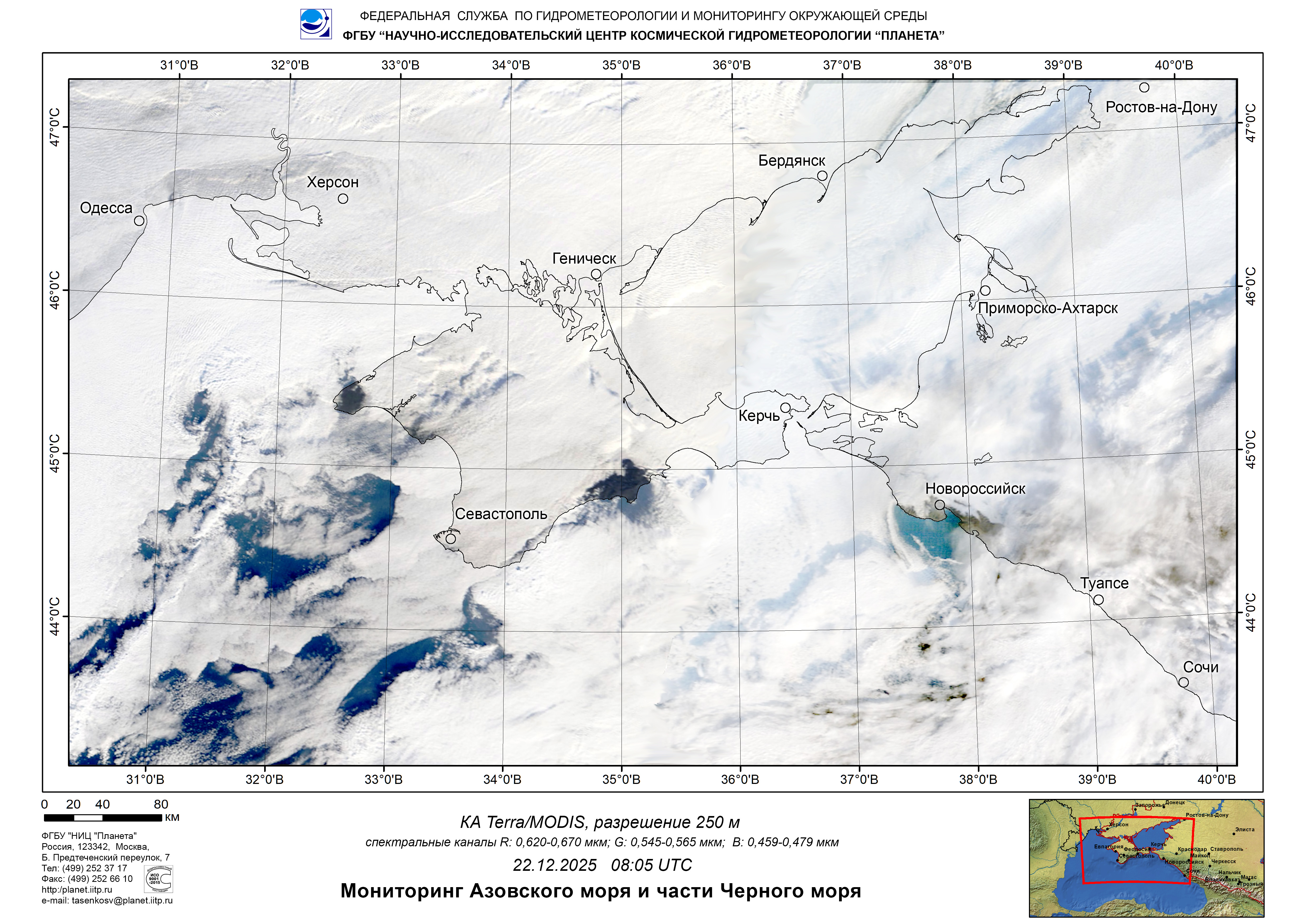 Satellite monitoring of the Russian sector of Black and Azov Seas