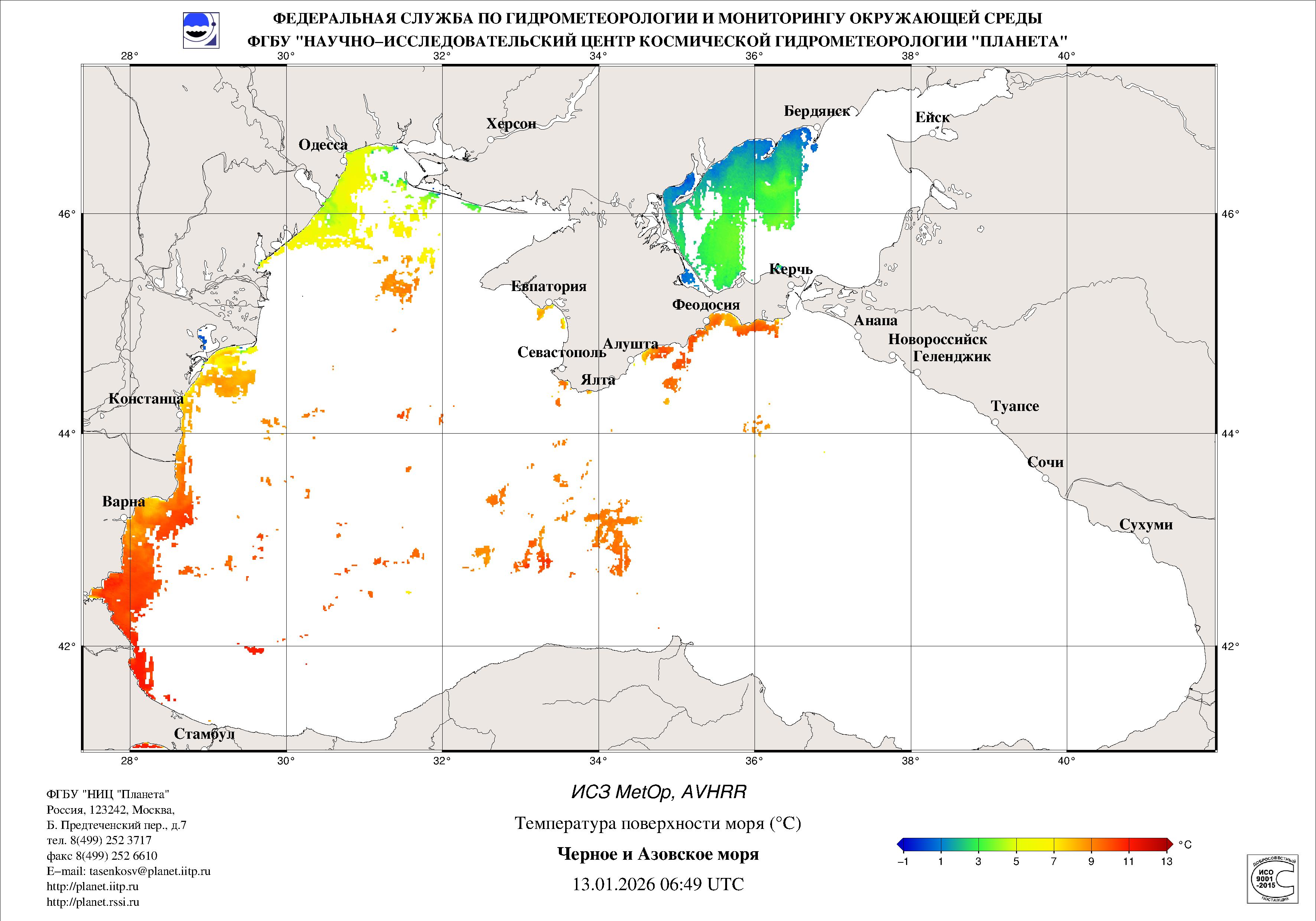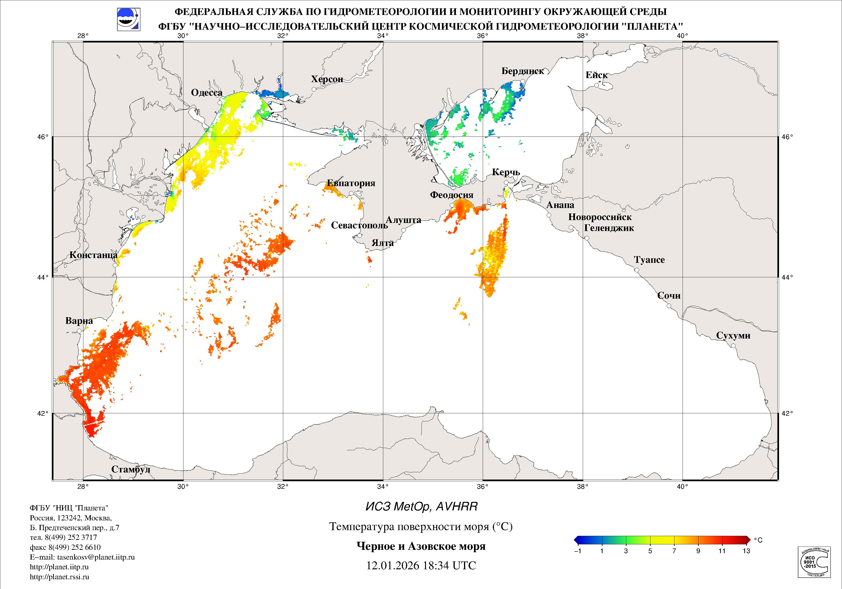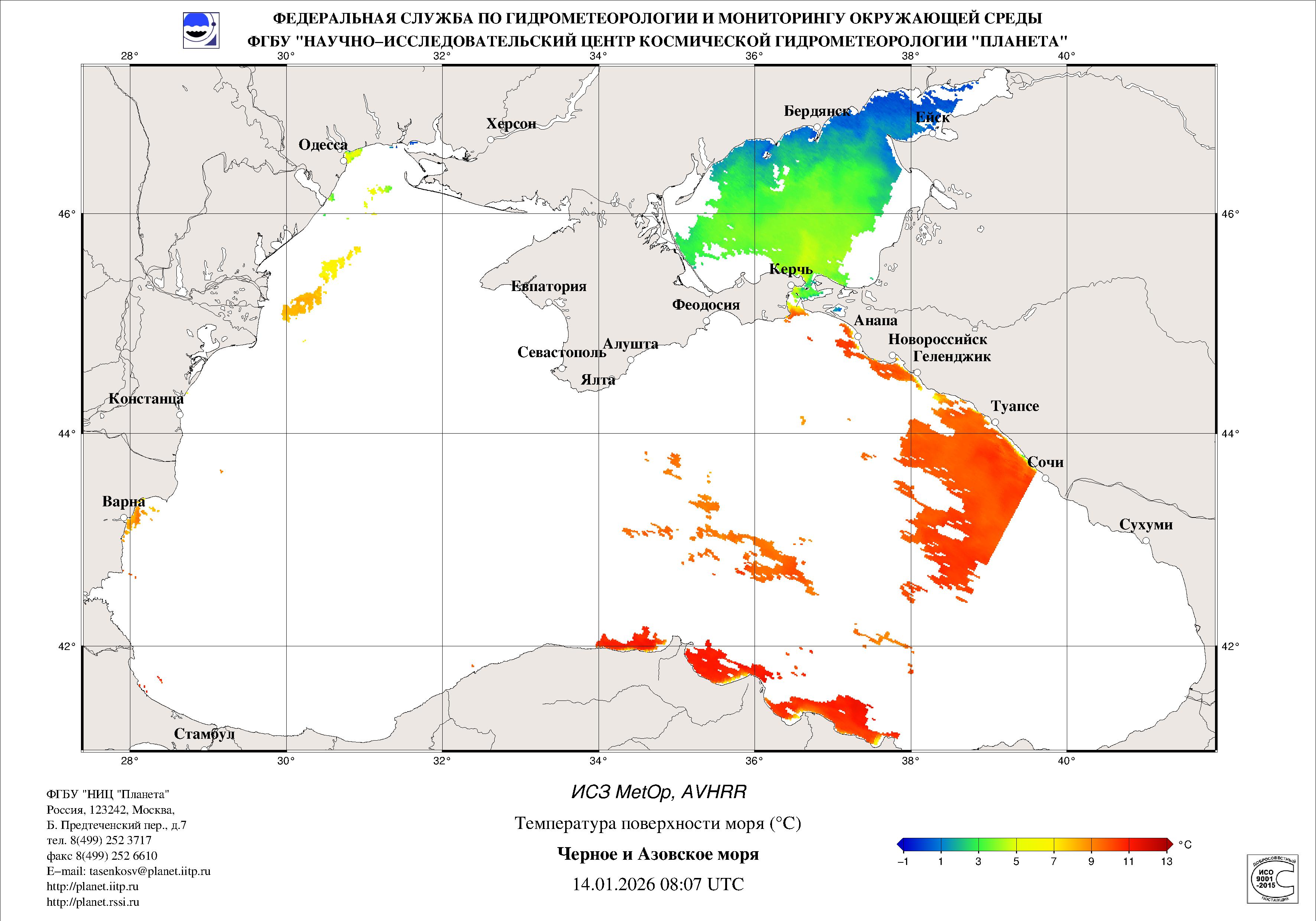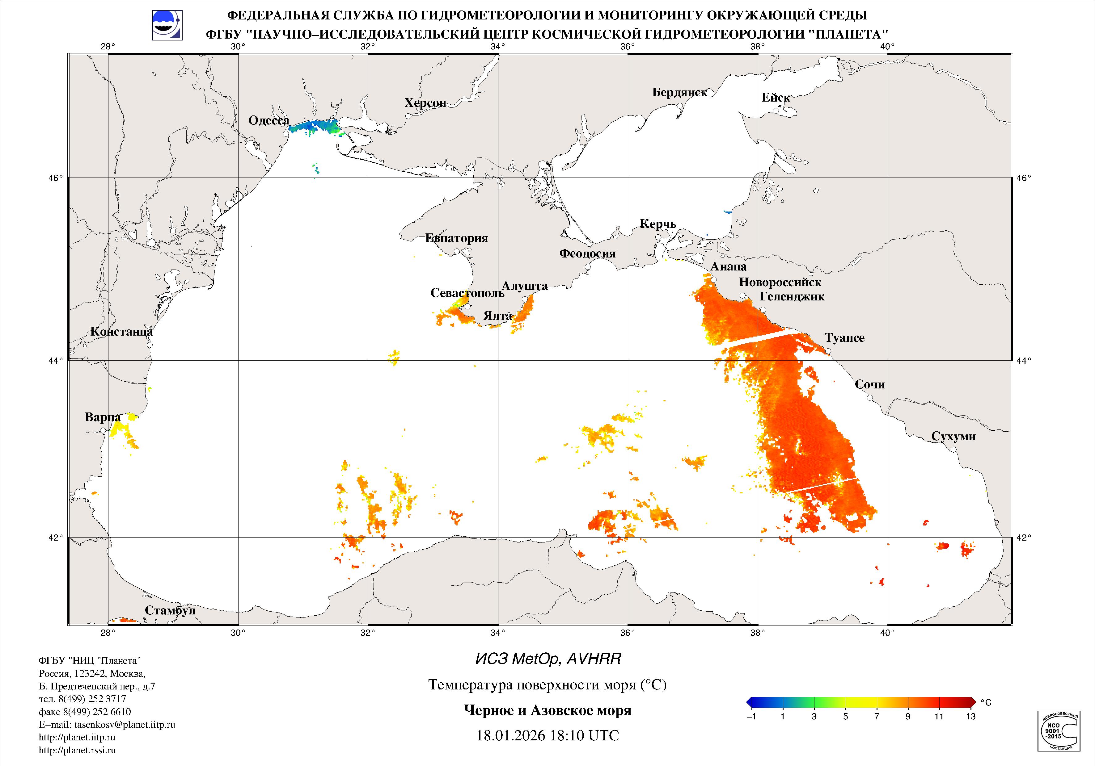 Satellite monitoring of the Russian sector of Black and Azov Seas