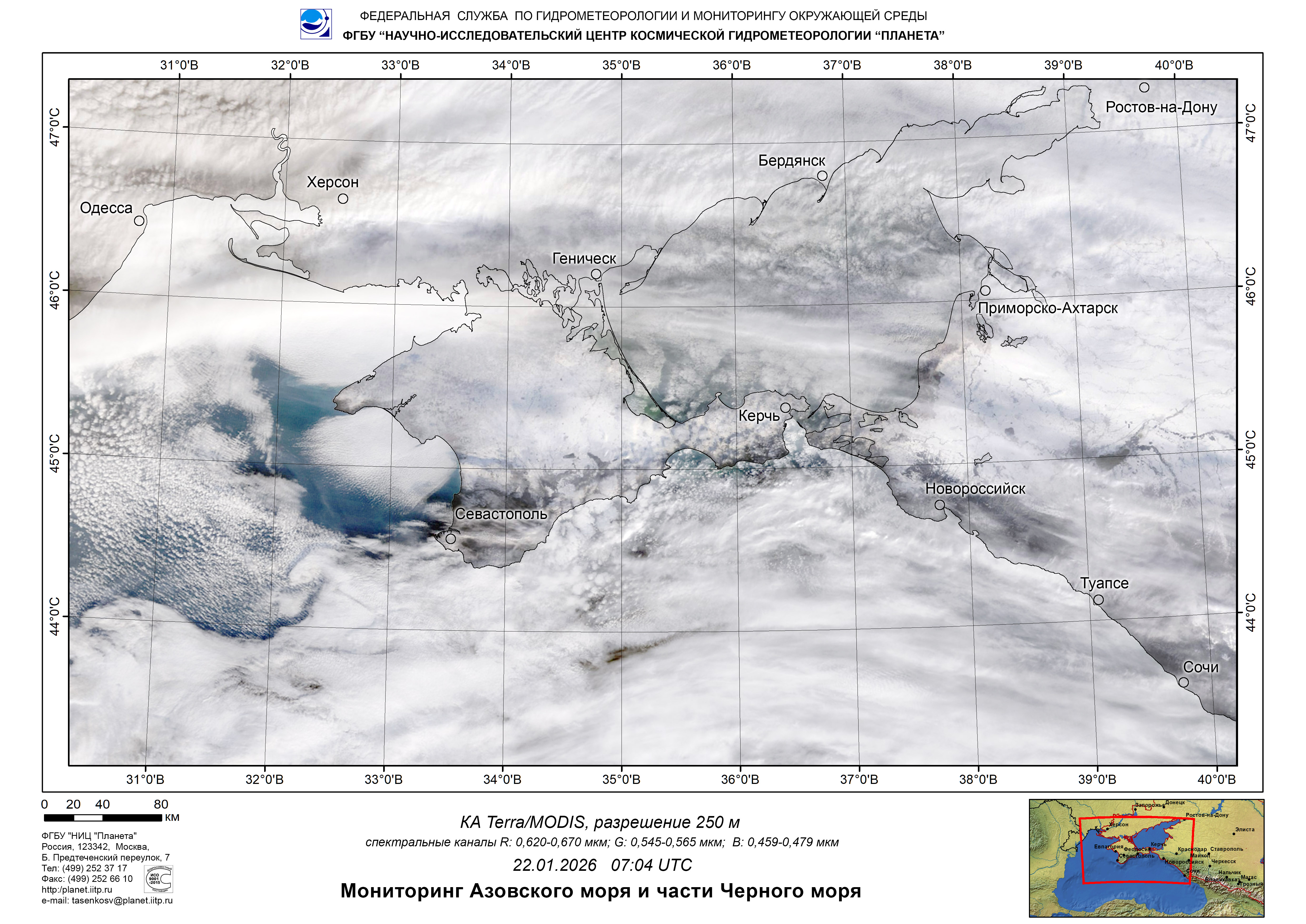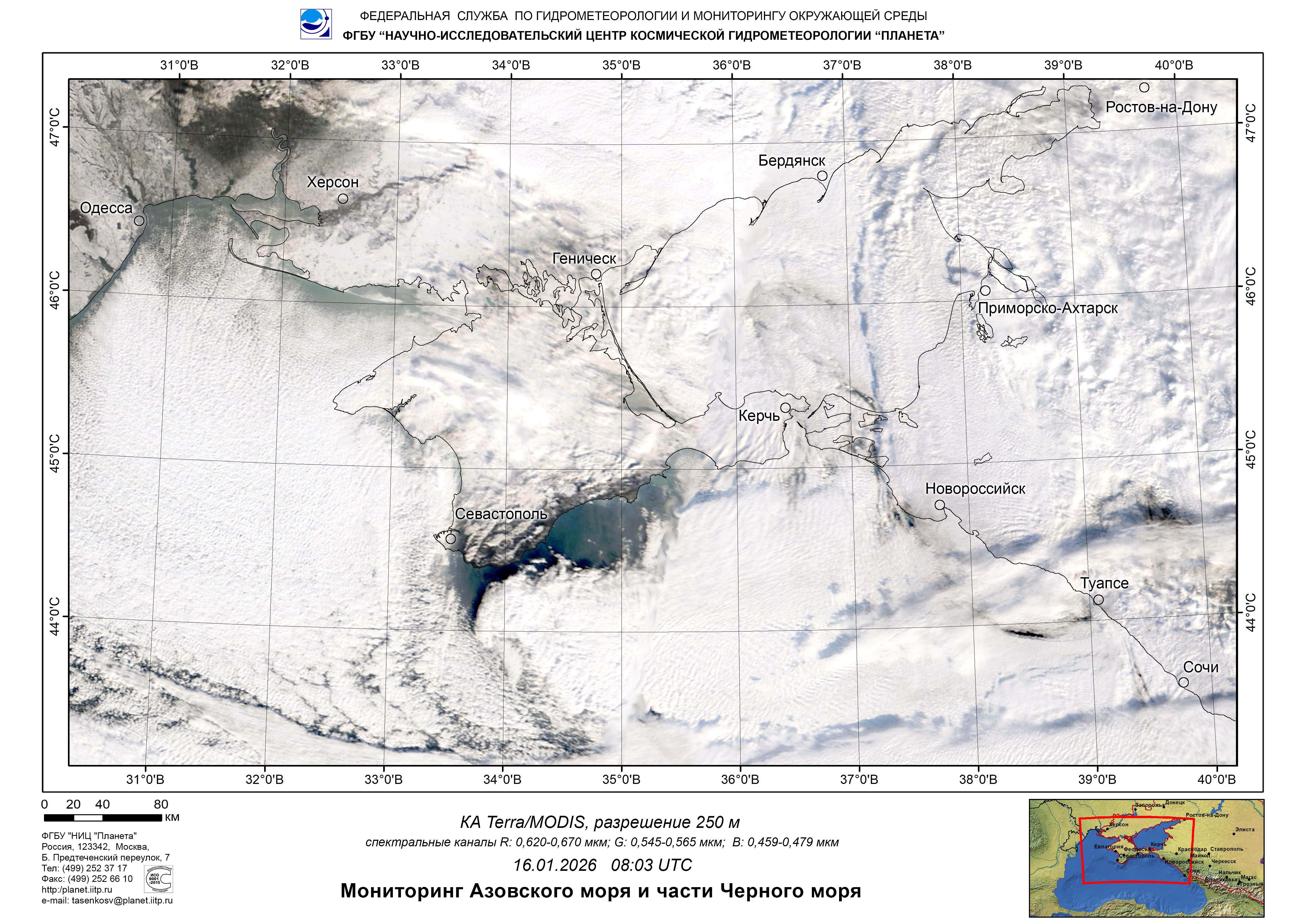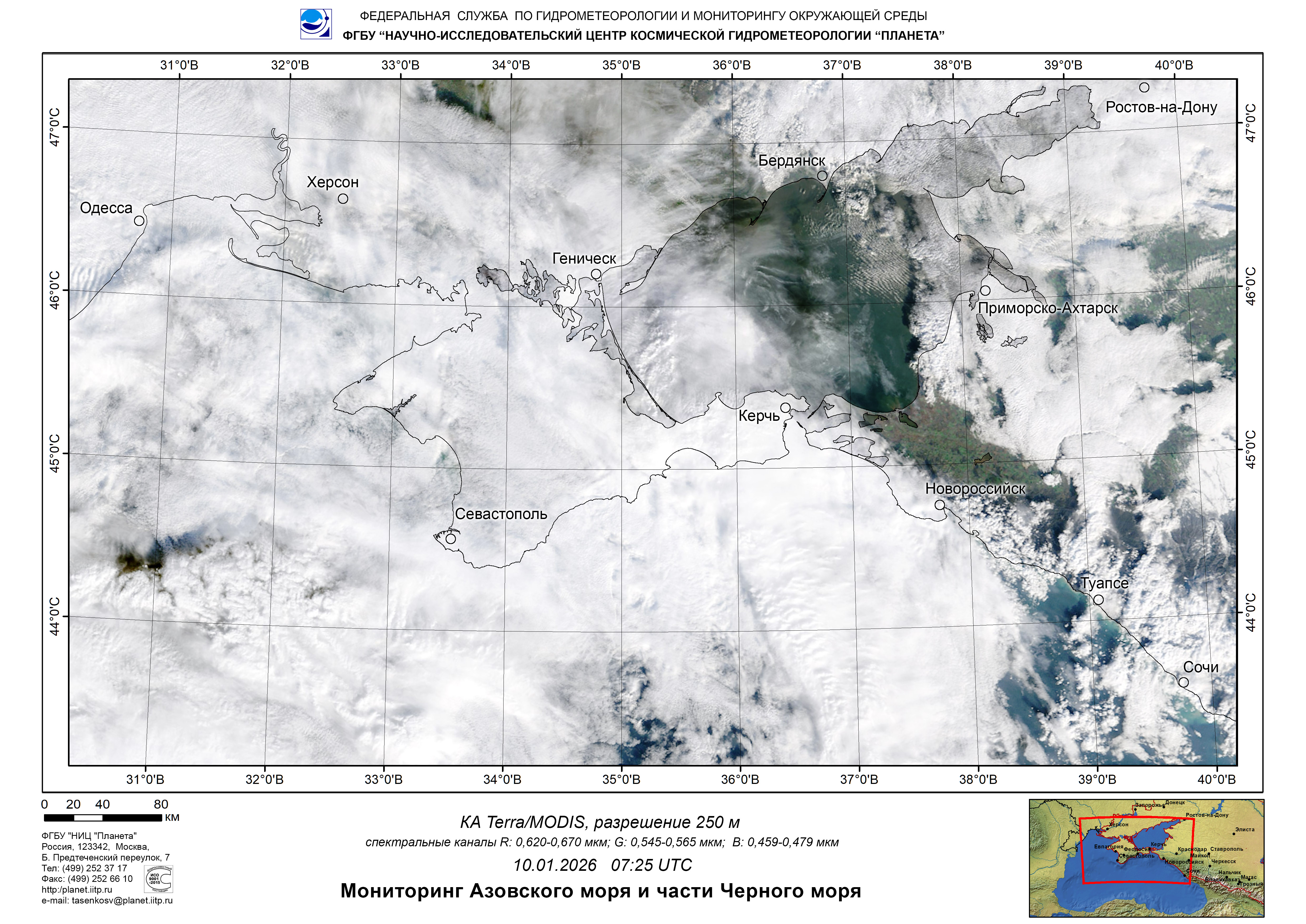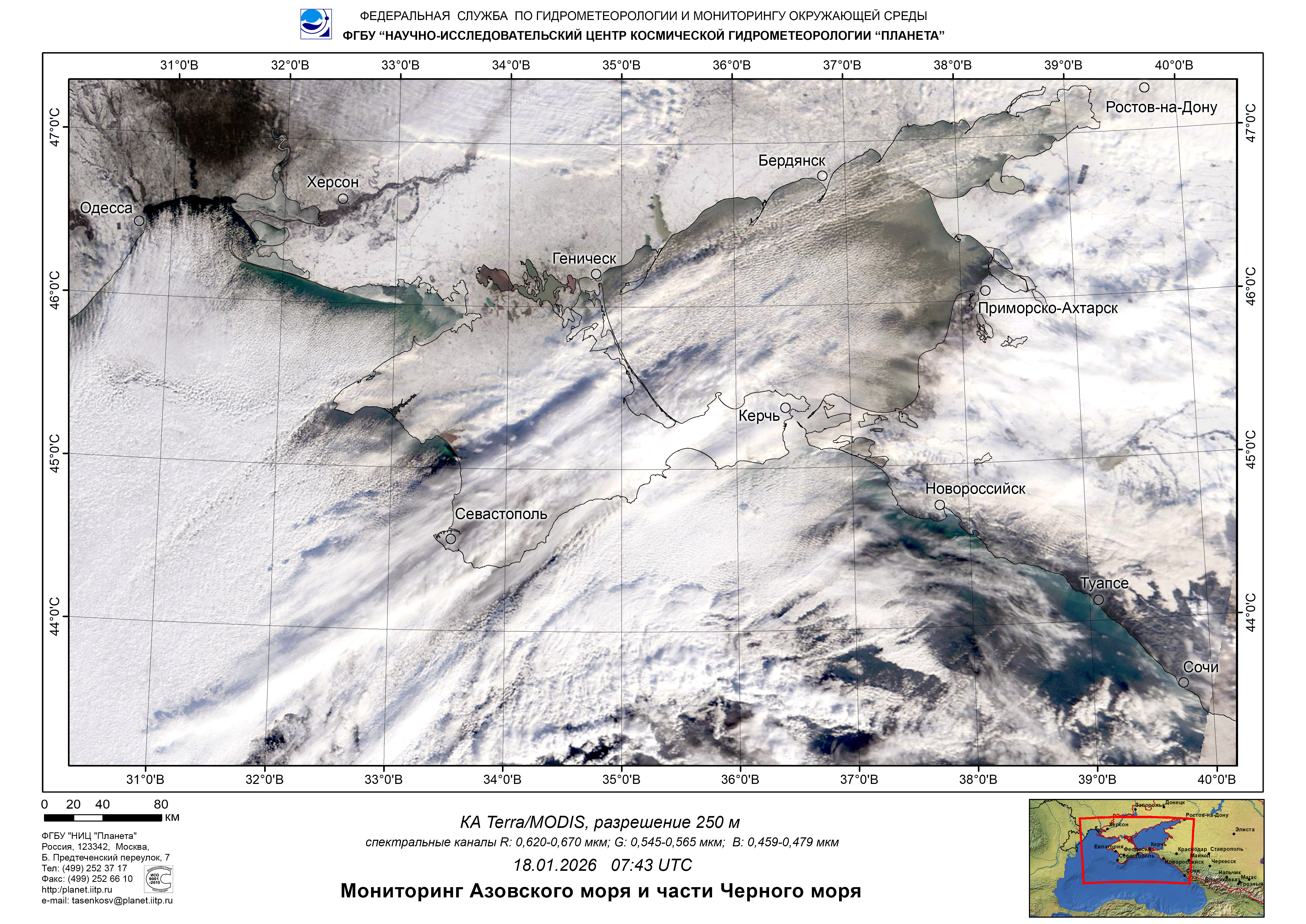 Satellite monitoring of the Russian sector of Black and Azov Seas