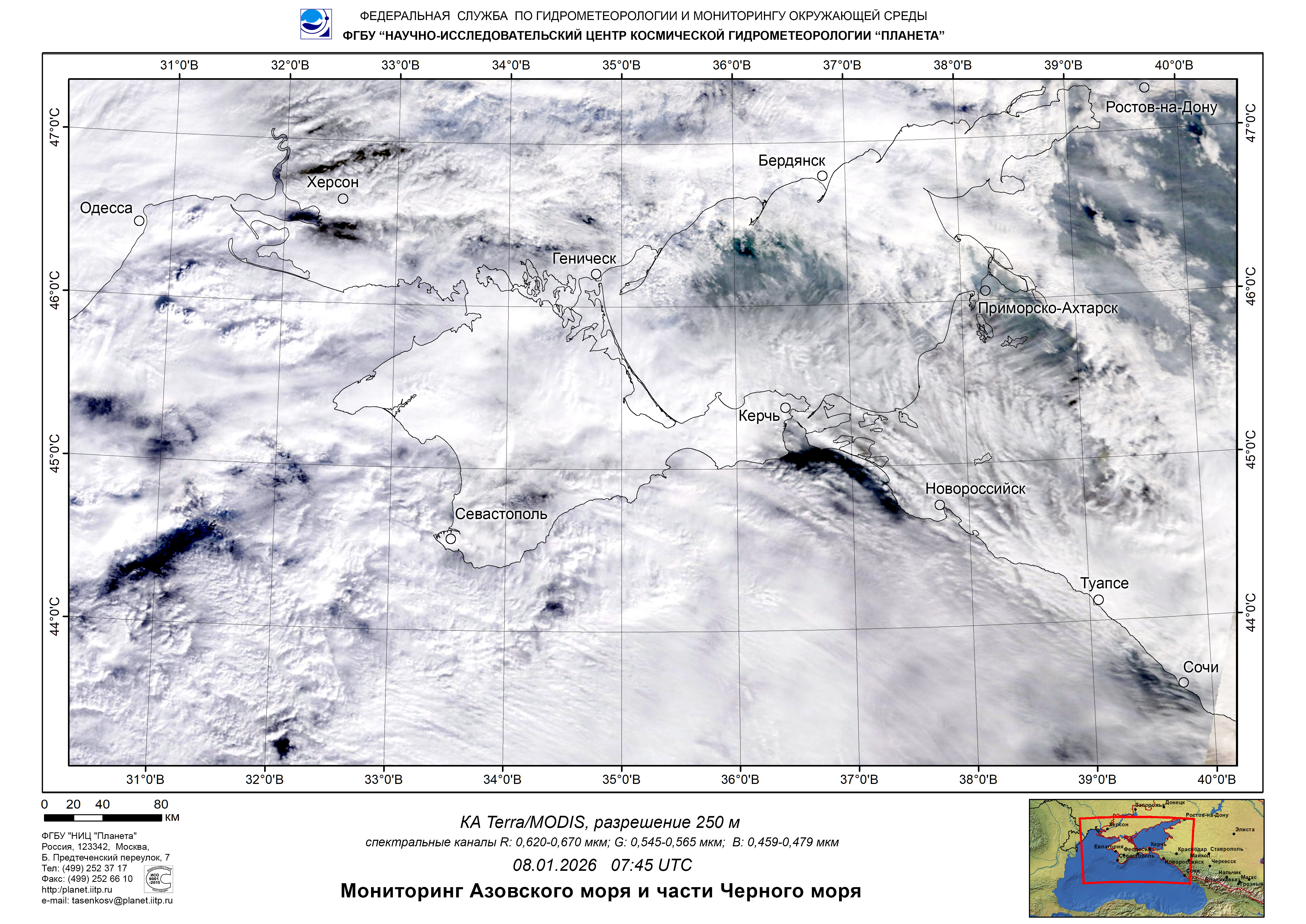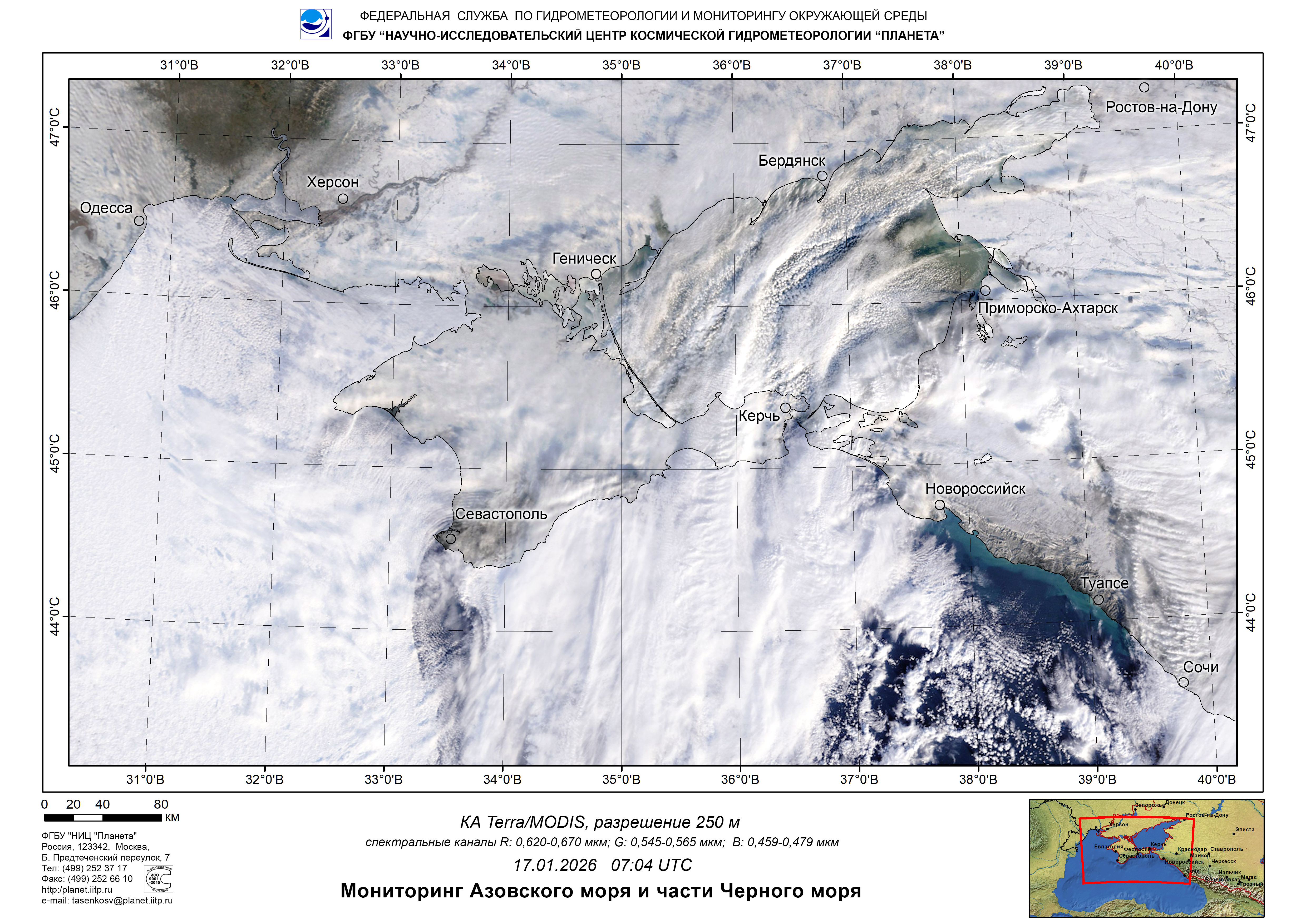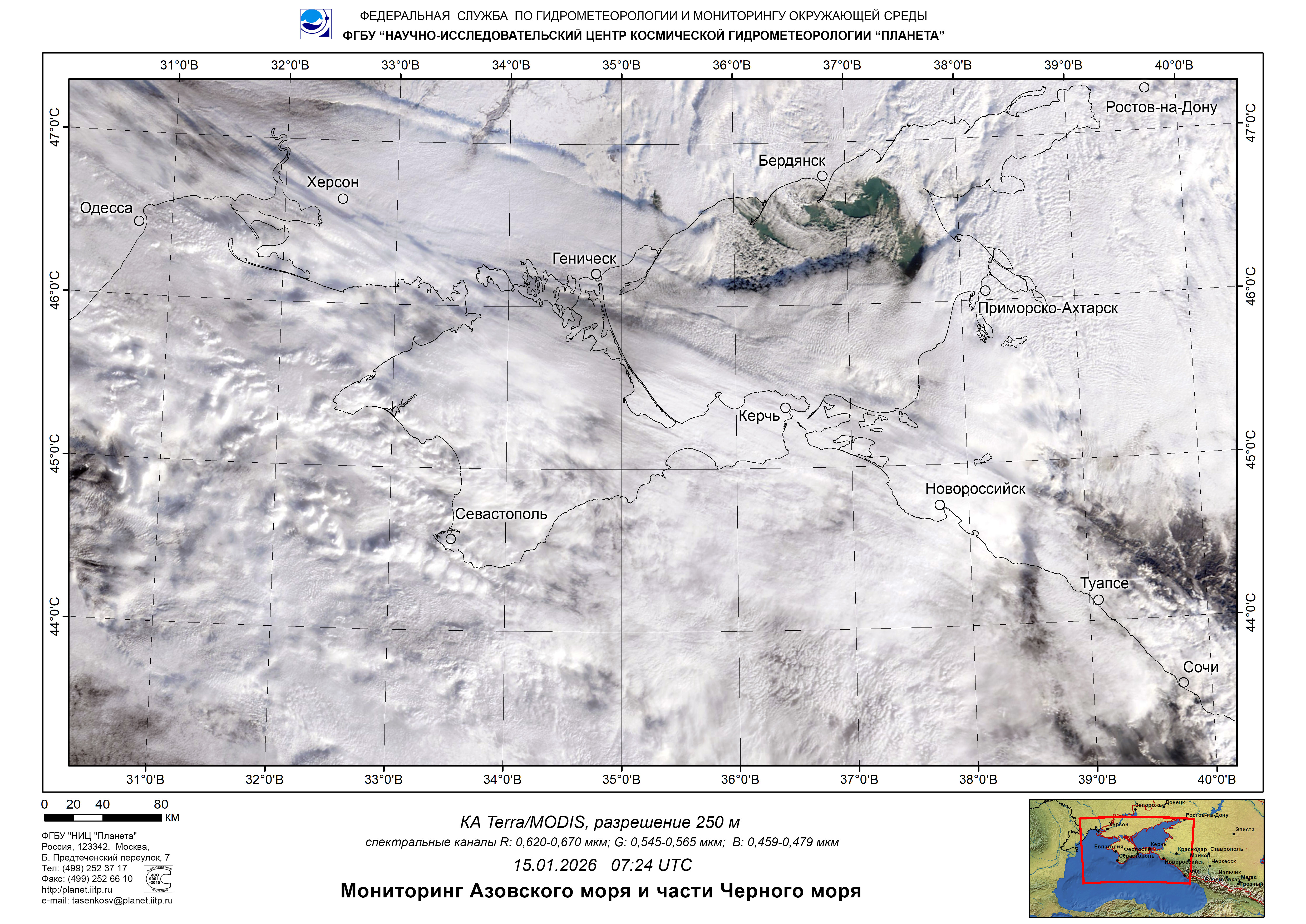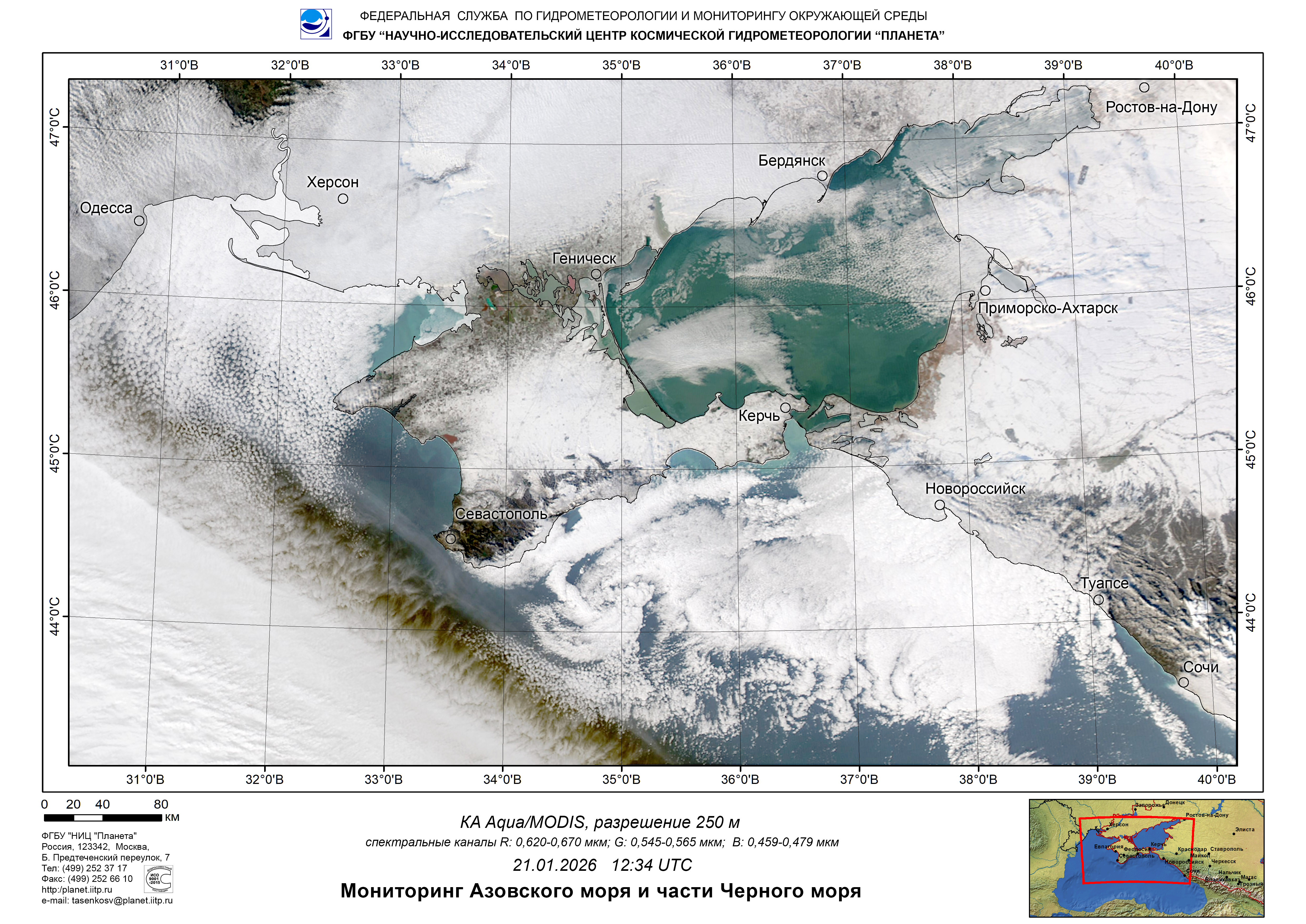 Satellite monitoring of the Russian sector of Black and Azov Seas